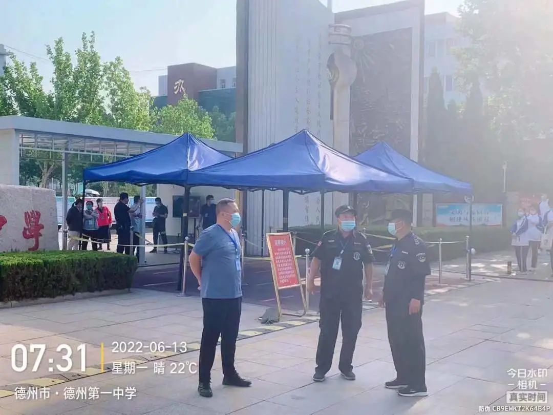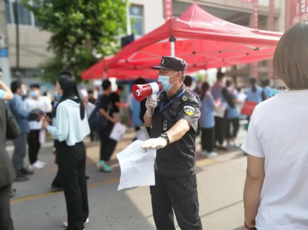 期間,各考點(diǎn)安保負(fù)責(zé)人趙洪臣、孫輝國(guó)、邱洪冰、賈義軍、候佃榮等主管領(lǐng)導(dǎo)及執(zhí)勤隊(duì)員一早提前到達(dá)崗位,配合現(xiàn)場(chǎng)工作人員做好證件查驗(yàn),嚴(yán)禁無(wú)關(guān)人員混入考場(chǎng),同時(shí)防止人員擁堵、讓考生安全。并積較協(xié)助公安機(jī)關(guān)通過(guò)定點(diǎn)執(zhí)勤和動(dòng)態(tài)巡邏相結(jié)合的方式,對(duì)轄區(qū)內(nèi)各考點(diǎn)及周邊開(kāi)展巡邏,引導(dǎo)學(xué)生有序入場(chǎng),維護(hù)考場(chǎng)周邊秩序,讓考生進(jìn)場(chǎng)安全暢通。