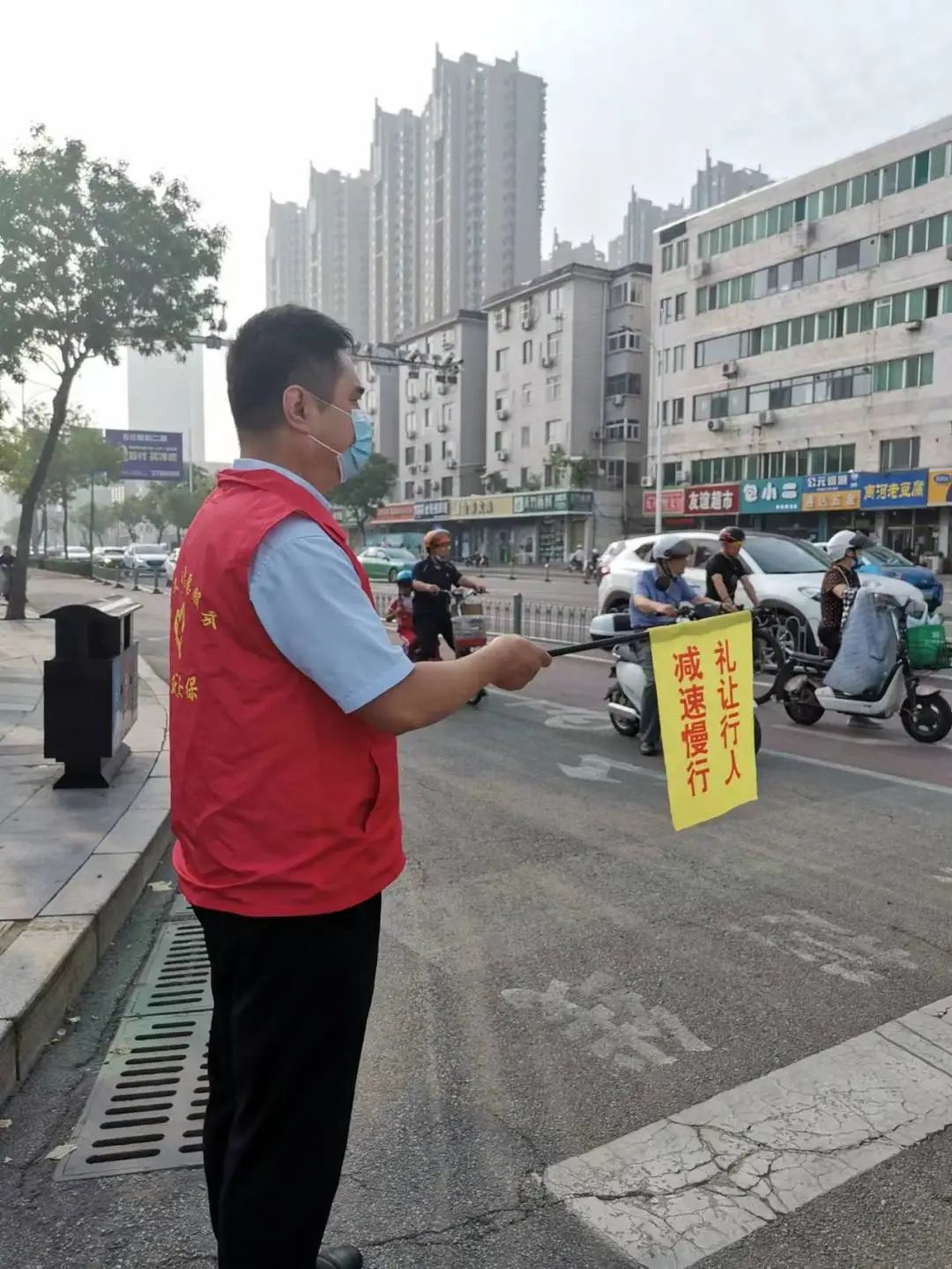 活動(dòng)期間,為踐行“我為群眾辦實(shí)事”實(shí)踐活動(dòng),全體黨員化身“文明勸導(dǎo)員”,來到主要路口,積較投身文明交通志愿活動(dòng)中?;顒?dòng)中他們積較引導(dǎo)居民文明出行,對車輛亂停亂放、未正確佩戴頭盔、闖紅燈、逆行等不文明行為進(jìn)行勸導(dǎo),同時(shí)對有實(shí)際困難的群眾實(shí)施幫助,用耐心和熱情傳遞文明,用實(shí)際行動(dòng)維護(hù)平安和諧。