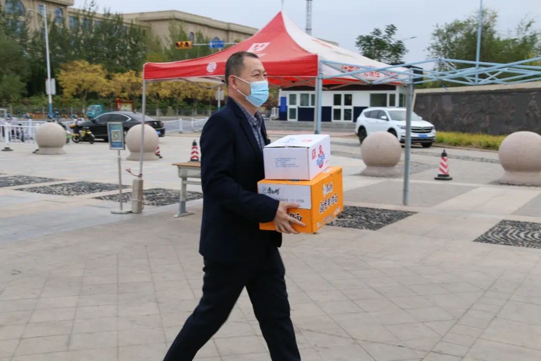 王新衛(wèi)一行先后到方艙醫(yī)院、德州學(xué)院,為一線安保人員送去扒雞、方便面、火腿等生活物資,并對(duì)他們的辛勤工作和默默奉獻(xiàn)表示敬意。