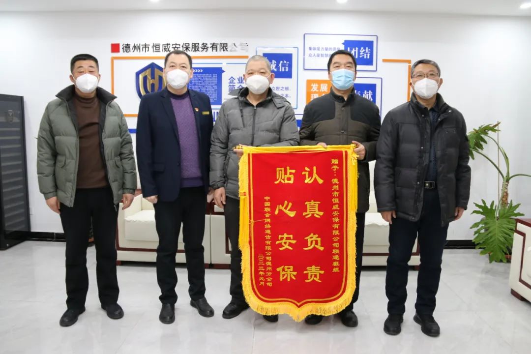 將寫有“團隊優(yōu)良 恒威一流”“認真負責(zé) 貼心安?!钡腻\旗交予恒威安保手中,感謝恒威安保人在工作中履職盡責(zé)、踏實勤懇、真誠細心,特別是疫情防控期間,不畏時艱、任勞任怨堅守工作崗位,為公司有序、健康、穩(wěn)定運轉(zhuǎn)貢獻了堅實力量。
