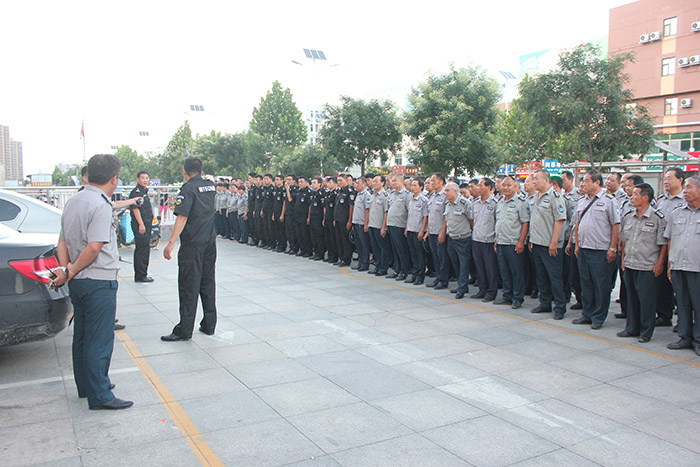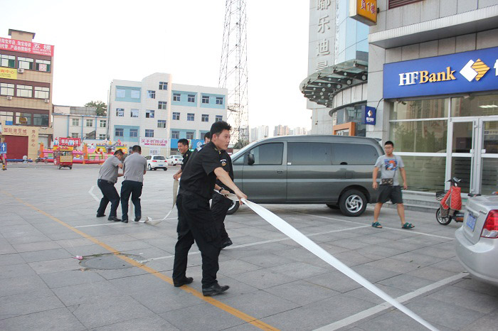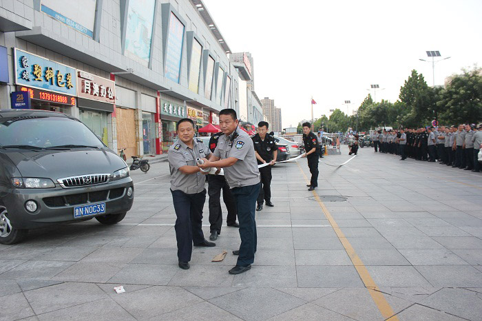 7月27日上午8時30分,人防一大隊接客戶單位天衢路中國銀行求助電話后,立即通知大隊應急搶險分隊30名保安隊員在第一時間趕赴現(xiàn)場。大隊長王新剛,一中隊、三中隊中隊長李明、孫輝國在下達集結(jié)指令的同時也快速抵達。