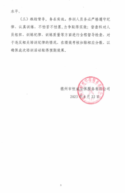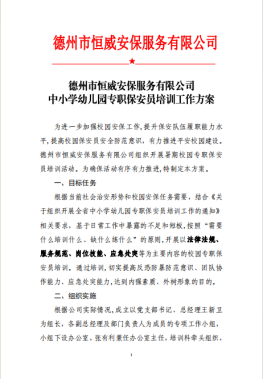 為貫徹落實德州市公安局、德州市教育和體育局《關(guān)于組織開展全市中小學(xué)幼兒園專職保安員培訓(xùn)工作通知》要求,結(jié)合市公安局保安專題培訓(xùn),進一步提升中小學(xué)幼兒園專職保安員綜合素質(zhì),增強反恐防暴意識,提高校園保安員對突發(fā)暴力事件的應(yīng)對能力,全力保障校園安全有序穩(wěn)定。德州市恒威安保服務(wù)有限公司高度重視,立即安排部署相關(guān)工作。