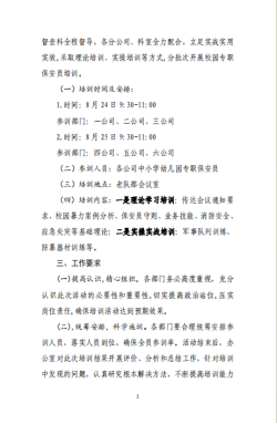 8月22日,召開校園專職保安員培訓(xùn)動員會議。要求辦公室負責(zé)制定校園保安員專題培訓(xùn)工作方案,按照“需要什么培訓(xùn)什么、缺什么練什么”的原則,立足實戰(zhàn)實用實效,分批次開展校園專職保安員培訓(xùn)。