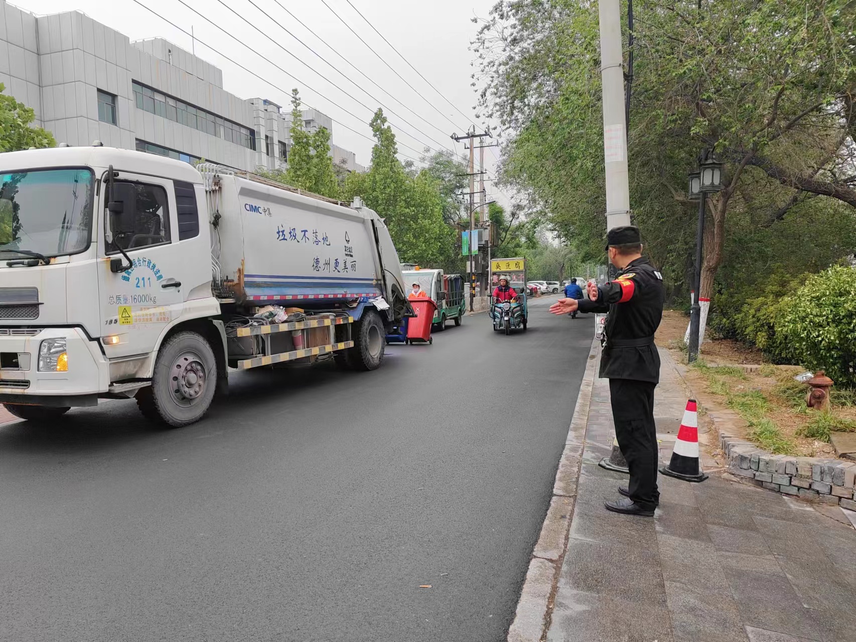 勤務(wù)第一天上午下起了小雨,但人流量并沒有因天氣原因減少,很多外地游客慕名到運(yùn)河古街拍照游玩,為了維持好車場(chǎng)和景區(qū)的秩序,隊(duì)員們冒雨堅(jiān)守崗位,確保車輛安全出入,景區(qū)秩序井然有序。