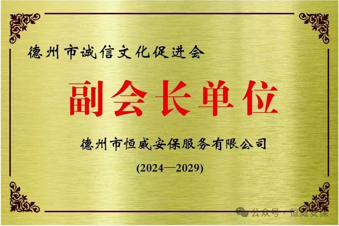 近日,德州市恒威安保服務有限公司正式當選為德州市誠信文化促進會副會長單位,這一榮譽不僅彰顯了恒威安保在誠信建設方面的卓越成就,也為其未來的發(fā)展注入了新的動力。
