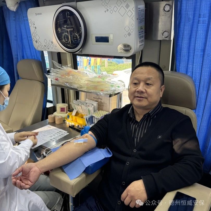 活動現(xiàn)場,公司員工在醫(yī)護人員指引下有序完成信息登記、血壓檢測、血液篩查等流程。公司副總經(jīng)理王洪林率先垂范,成為首位獻血者,他鄭重表示:“無償獻血,是每位公民引以為榮的義務(wù),更是彰顯我們社會責(zé)任感的直接方式。身為安保從業(yè)者,我們不僅在崗位上守護著客戶的安全,更需主動站出來,積極承擔(dān)社會責(zé)任。無償獻血,就是我們回饋社會的一項實實在在、看得見摸得著的行動,它有力證明了恒威企業(yè)文化中對社會責(zé)任的高度重視和切實履行。據(jù)悉,自1998年起,王洪林已連續(xù)多年堅持獻血,此次是他第34次獻血,累計獻血量高達13600毫升,并榮獲“全國無償獻血奉獻獎金獎”。